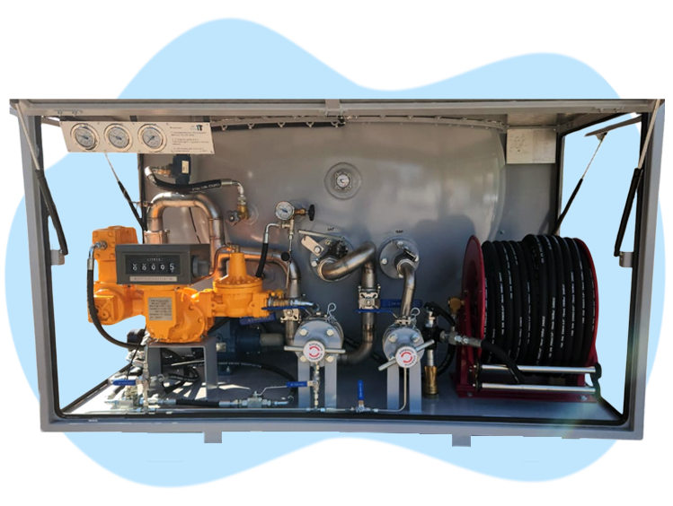 Шланг длиной 50 метров, установленный на оборудовании, обеспечивает значительную мобильность при подаче газа. Благодаря такой длине становится возможным осуществлять заправку или подачу газа в труднодоступные места без необходимости непосредственного подъезда транспортного средства к объекту.